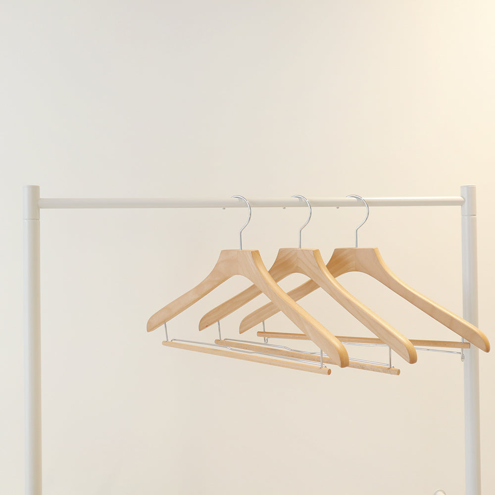 スライドバー付きでスラックスなどのボトムスを掛けることもでき、繊細なお洋服の収納に最適です。