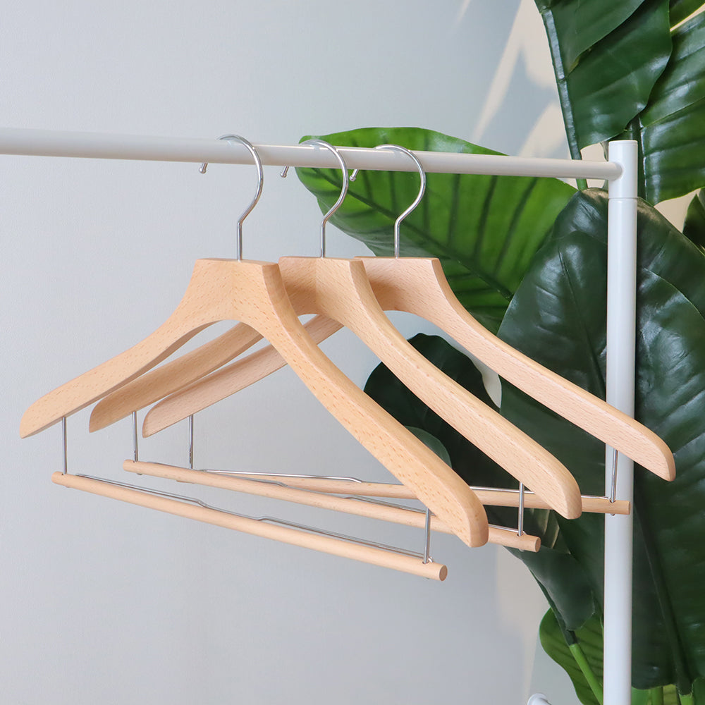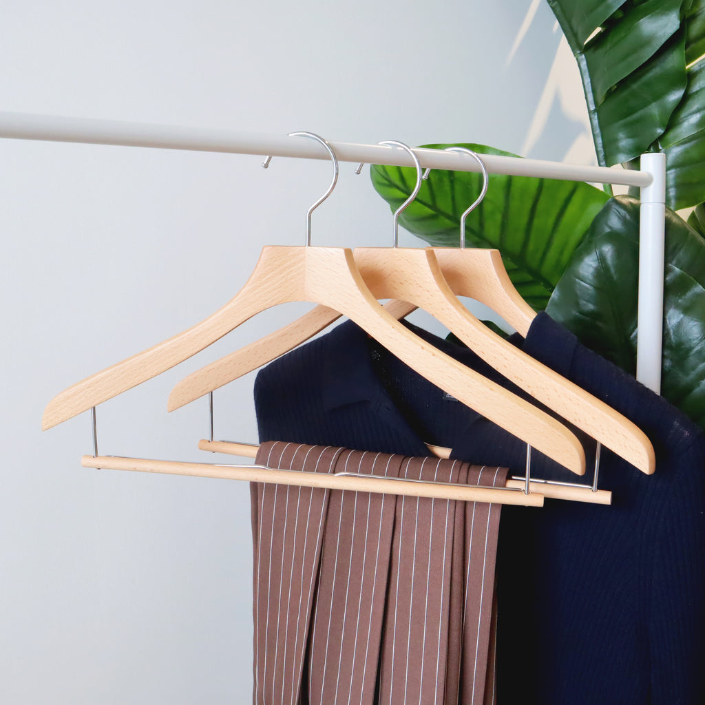 スライドバー付きでスラックスなどのボトムスを掛けることもでき、繊細なお洋服の収納に最適です。