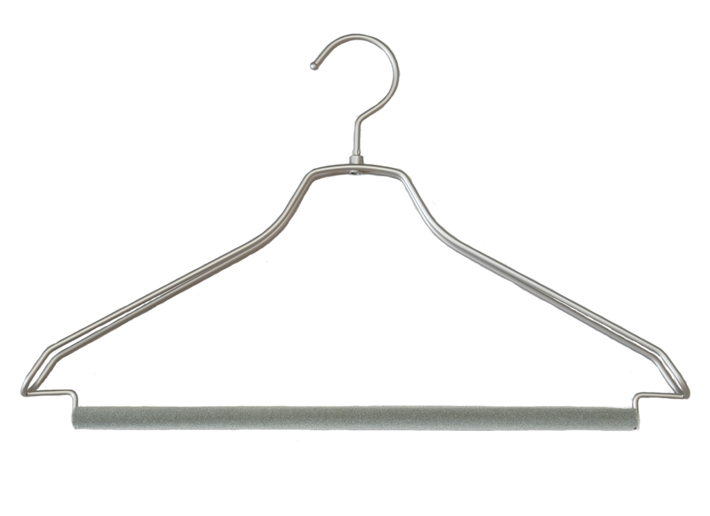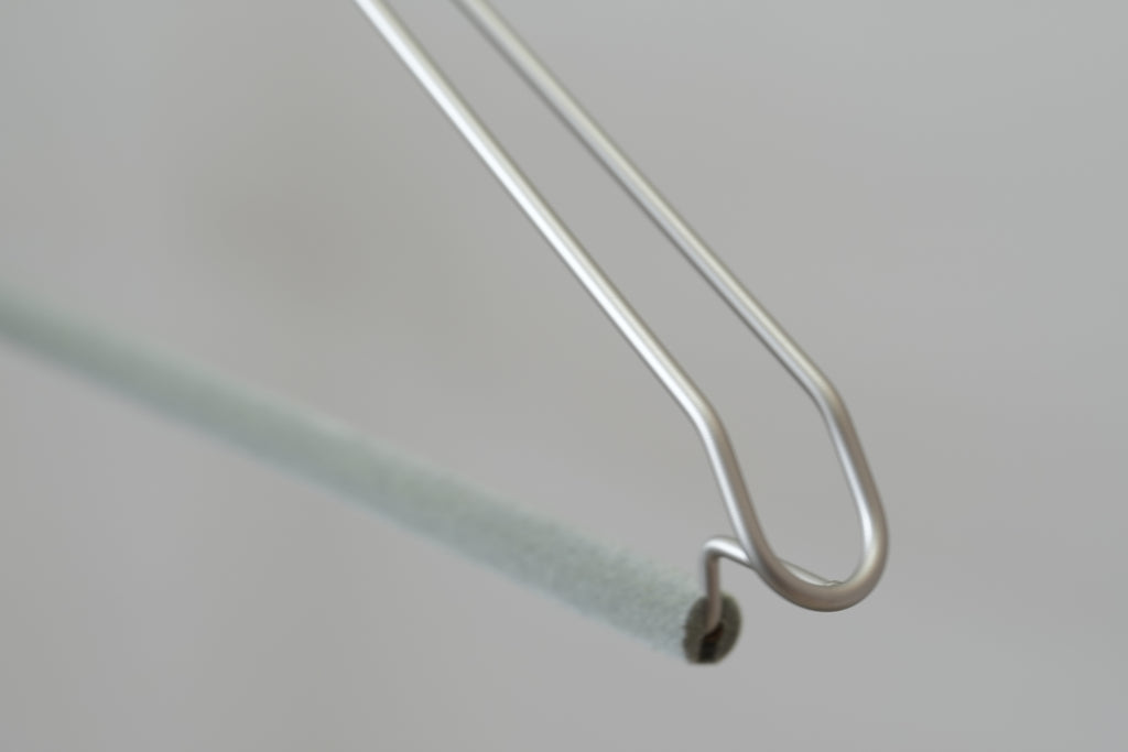 丈夫なスチール素材を使用したハンガーに、滑り止め効果のある植毛加工バーをプラスしました。
