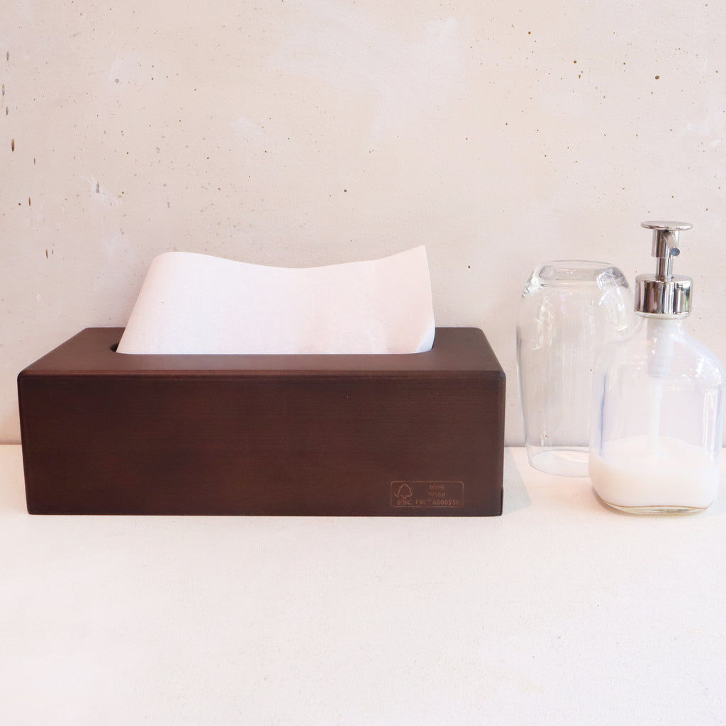 FSC®認証を取得した高品質な木材で作らた環境配慮型ティッシュボックスです。